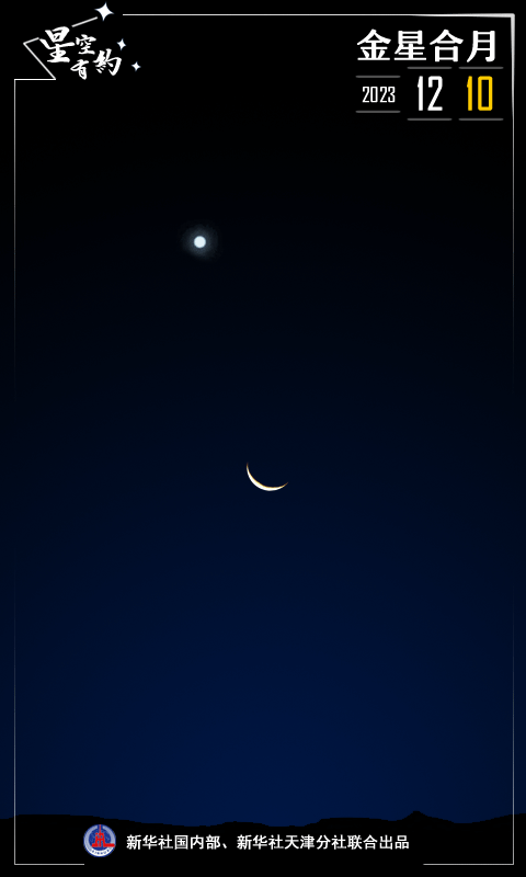 新華社天津12月8日電(記者周潤?。╄裁髁恋慕鹦桥c細細窄窄的月亮每每“相遇”時(shí),總能給天空增添一抹亮色。天文科普專(zhuān)家介紹,今年最后一次金星合月將于12月10日上演,感興趣的公眾可于當日清晨進(jìn)行觀(guān)賞,星很亮,月很柔,二者近距離相伴別有一番韻味。