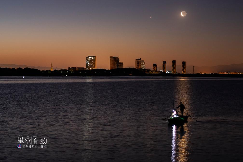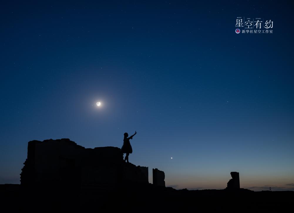 重慶星空愛(ài)好者周揚宋丹2021年8月12日在青海冷湖拍攝的金星伴月。(星聯(lián)CSVA供圖)