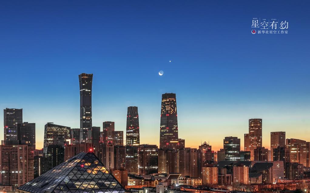 北京星空攝影愛(ài)好者王俊峰2023年6月21日在北京豐臺花園拍攝的金星伴月。(本人供圖)