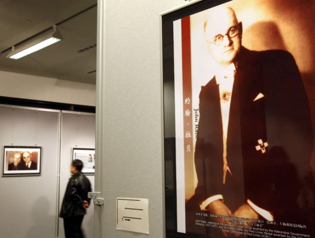2010年11月12日,參觀(guān)者在德國柏林中國文化中心觀(guān)看約翰·拉貝事跡圖片展。新華社記者 羅歡歡 攝