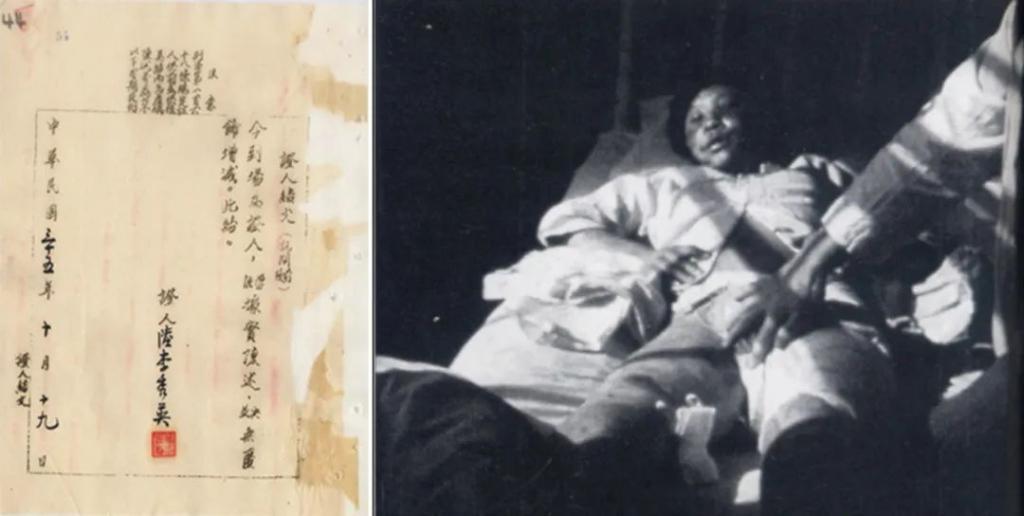 左圖為南京大屠殺幸存者李秀英的證人結文;右圖為1937年12月李秀英在鼓樓醫院被救治時(shí)的場(chǎng)景。新華社發(fā)