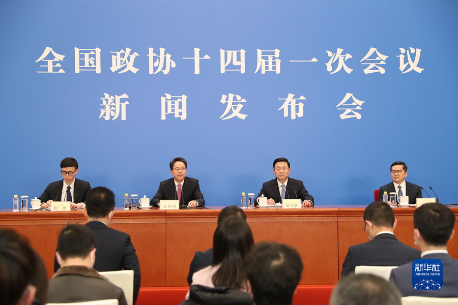 3月3日,全國政協(xié)十四屆一次會(huì )議新聞發(fā)布會(huì )在北京舉行,大會(huì )新聞發(fā)言人郭衛民向中外媒體介紹本次大會(huì )有關(guān)情況并回答記者提問(wèn)。圖為人民大會(huì )堂新聞發(fā)布廳現場(chǎng)。新華網(wǎng)記者 焦鵬 攝