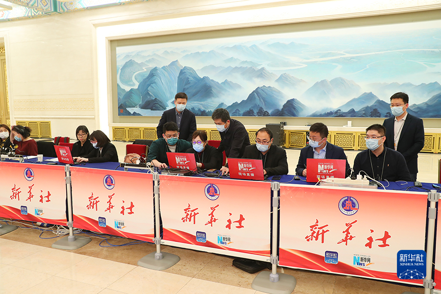 3月5日下午3時(shí),全國政協(xié)十四屆一次會(huì )議在人民大會(huì )堂三樓金色大廳舉行民主黨派中央和全國工商聯(lián)領(lǐng)導人記者會(huì ),請各民主黨派中央主席和全國工商聯(lián)主席出席并回答記者提問(wèn)。圖為現場(chǎng)直播團隊正在進(jìn)行直播。新華網(wǎng)記者 焦鵬 攝