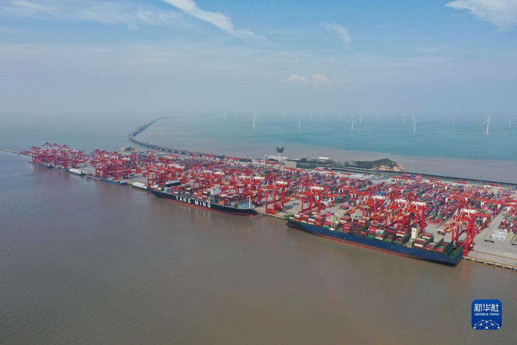 這是2022年9月23日拍攝的上海洋山港集裝箱碼頭(無(wú)人機照片)。新華社記者 丁汀 攝