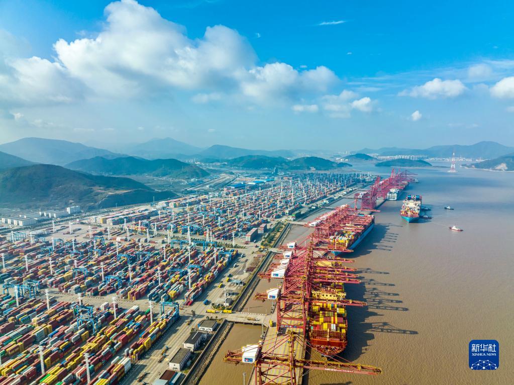 這是浙江寧波舟山港穿山港區(2021年12月24日攝,無(wú)人機照片)。新華社發(fā)(湯健凱 攝)