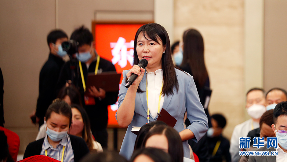 10月18日(星期二)15:00,二十大新聞中心在梅地亞新聞中心二層新聞發(fā)布廳舉辦第一場(chǎng)集體采訪(fǎng)。圖為香港商報記者在分會(huì )場(chǎng)提問(wèn)。(新華網(wǎng) 陳杰 攝)