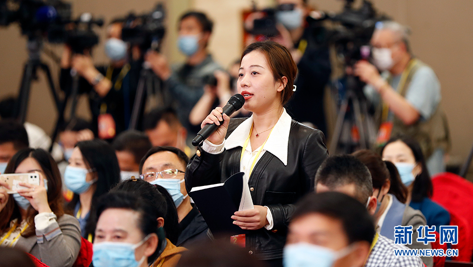 10月18日(星期二)19:30,二十大新聞中心在梅地亞新聞中心二層新聞發(fā)布廳舉辦第二場(chǎng)集體采訪(fǎng)。圖為澎湃新聞?dòng)浾咴诜謺?huì )場(chǎng)提問(wèn)。(新華網(wǎng) 陳杰 攝)