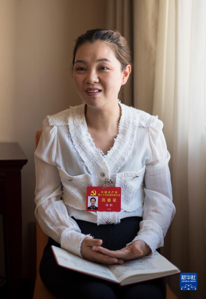 10月18日,孫娟代表接受記者采訪(fǎng)。新華社記者 張豪夫 攝