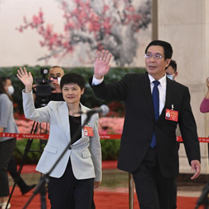 這是閉幕會(huì )后,吳燕生、朱敏、張連鋼代表(自左至右)步入“代表通道”,準備接受采訪(fǎng)。