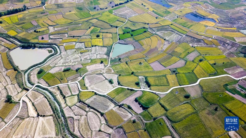 安徽省鳳陽(yáng)縣小崗村的田野景象(2018年9月27日攝,無(wú)人機照片)。新華社記者 張端 攝