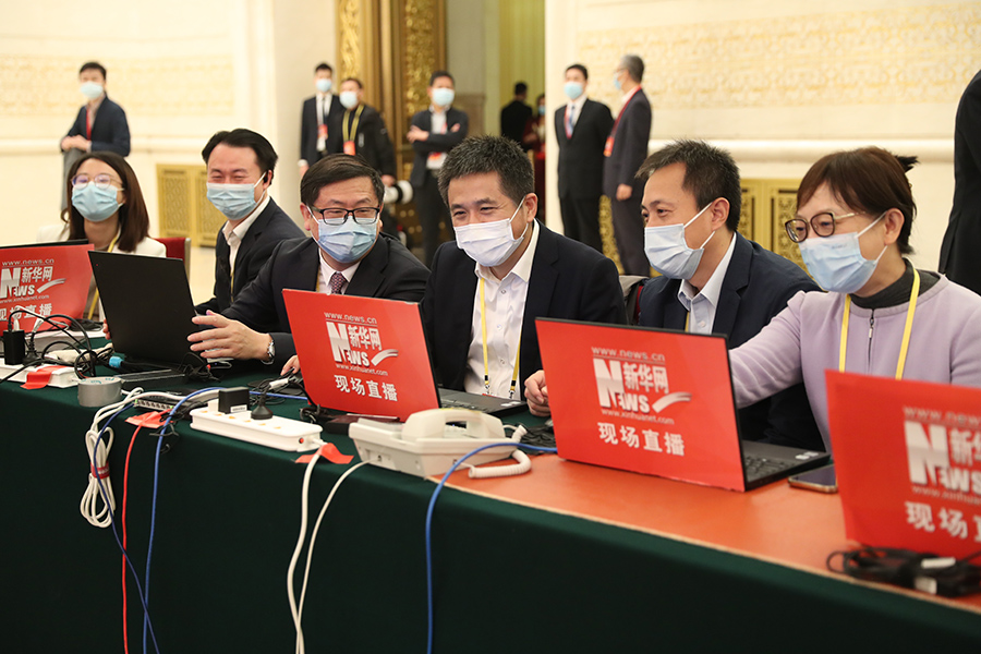 新華網(wǎng)記者在現場(chǎng)進(jìn)行直播準備