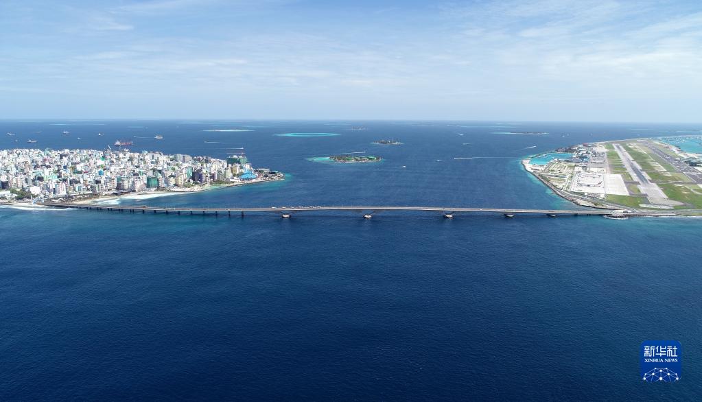 這是在馬爾代夫航拍的連接首都馬累和機場(chǎng)島的中馬友誼大橋(2019年8月30日攝)。新華社發(fā)(王明亮 攝)