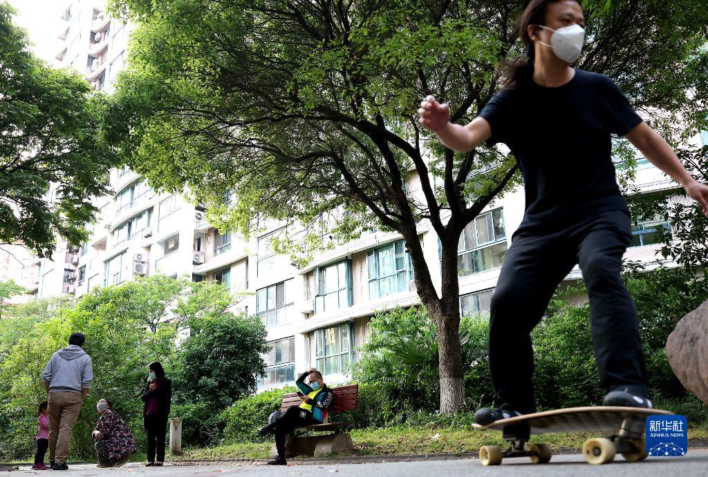 5月17日,市民在上海市普陀區的一個(gè)居民小區內享受休閑一刻。新華社記者 陳飛 攝
