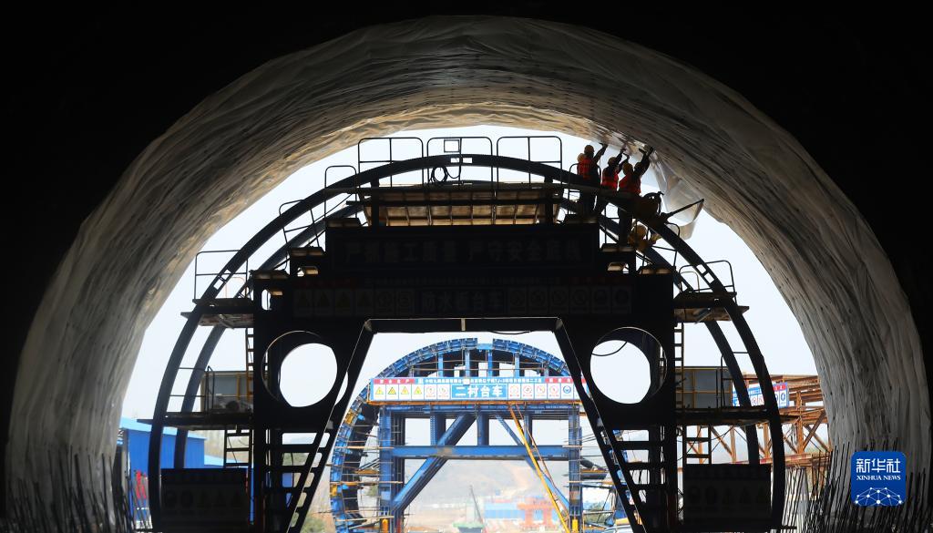 中鐵九局工程技術(shù)人員在撫順市蘭山隧道內施工,沈白高鐵全線(xiàn)掀起施工大干熱潮(4月20日攝)。新華社記者 楊青 攝