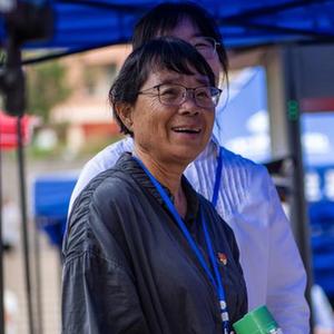 2023年高考首日,云南麗江華坪女子高中校長(cháng)張桂梅在考點(diǎn)外看著(zhù)學(xué)生們進(jìn)場(chǎng)待考(2023年6月7日攝)。新華社記者 江文耀 攝