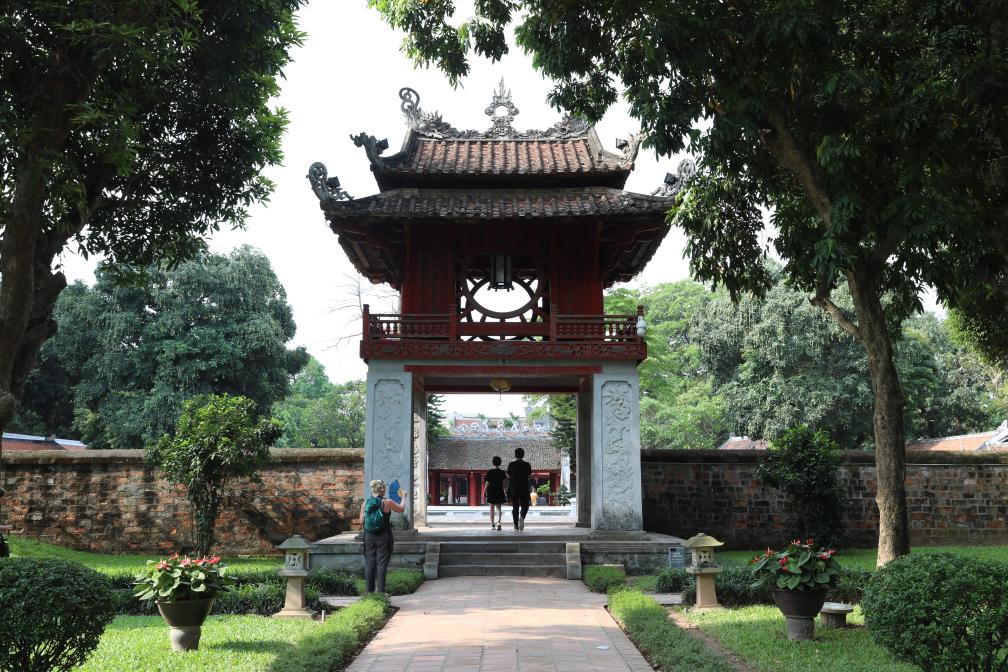 文廟是越南首都河內的歷史文化地標。文廟內供奉著(zhù)孔子,被譽(yù)為越南歷史上“第一所大學(xué)”。在這里求一幅漢字書(shū)法作品,是不少本地民眾和外國游客鐘情的活動(dòng)。