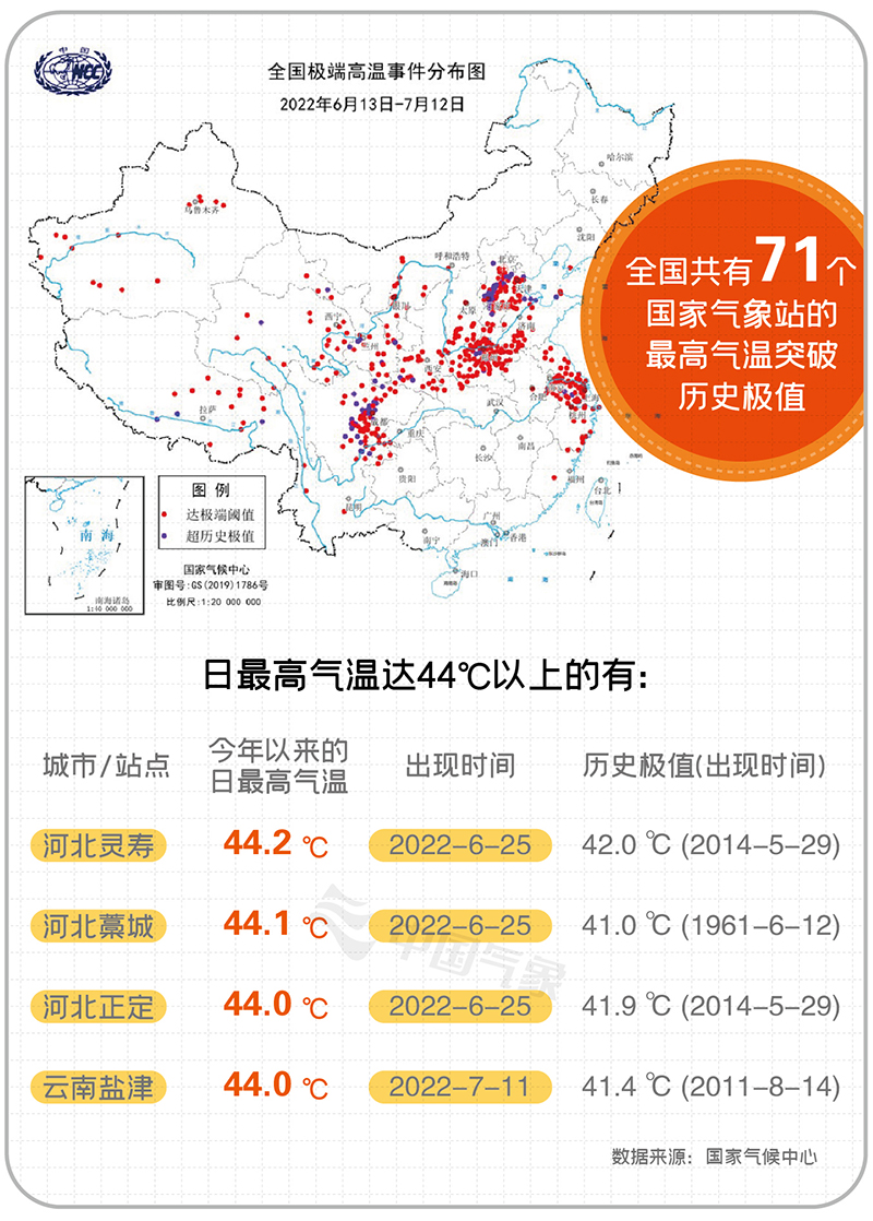 中國氣象局的一項數據統計顯示,6月以來(lái),河北、河南、天津、云南、四川、浙江、新疆等地共有238個(gè)國家氣象站日最高氣溫突破月極值,共有71個(gè)國家氣象站日最高氣溫突破歷史極值。其中,6月25日是6月以來(lái)高溫極值站點(diǎn)最多的一天。當天28個(gè)站日最高氣溫突破歷史極值,日最高氣溫前十的站點(diǎn)均出現在河北。
