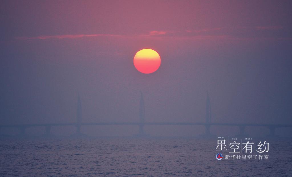 這是2022年1月1日在珠海拍攝的港珠澳大橋與新年初升的太陽(yáng)。新華社發(fā)(黃繼明 攝)
