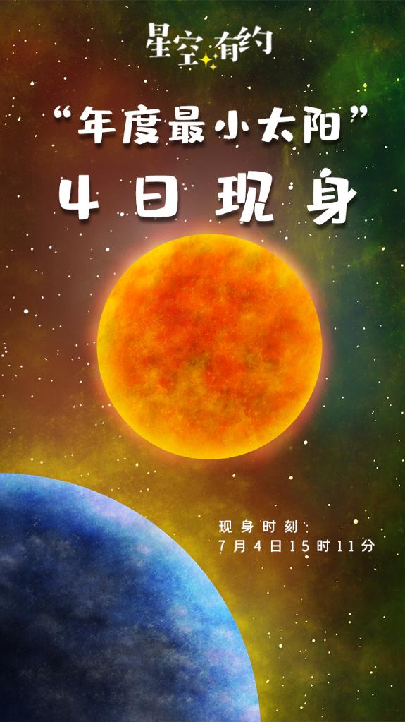 新華社南京7月3日電(記者王玨玢、邱冰清)4日15時(shí)11分,地球到達軌道遠日點(diǎn),這時(shí)人們將看到一輪“年度最小太陽(yáng)”。為什么太陽(yáng)時(shí)“大”時(shí)“小”?為啥太陽(yáng)遠了,天氣反而炎熱?中科院天文科普專(zhuān)家為您揭秘。