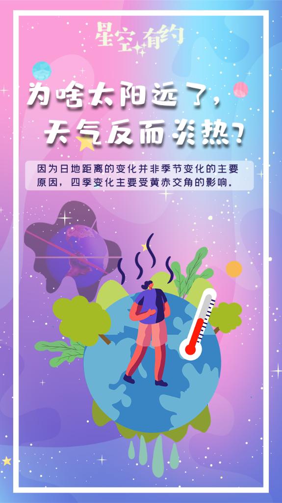 今年入伏的時(shí)間是7月16日,一年中最熱的時(shí)期即將到來(lái)。為啥太陽(yáng)遠了,天氣卻最炎熱?王科超解釋?zhuān)盏鼐嚯x的變化并非季節變化的主要原因。四季變化主要受黃赤交角的影響,由于黃赤交角的存在,太陽(yáng)在地球上的直射點(diǎn)在南北緯23度26分之間移動(dòng)。夏季,北半球的太陽(yáng)光照射角度高,光照時(shí)間長(cháng),接收到的輻射能量多,因此最為炎熱。