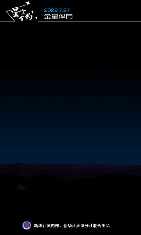 新華社天津7月25日電(記者周潤?。┏?yáng)外,通常情況下,月球和金星的亮度是整個(gè)天空中排名第二位和第三位的自然天體。當兩者相合或相伴,星光與月光交織在一起時(shí),如夢(mèng)似幻,宛若童話(huà)。