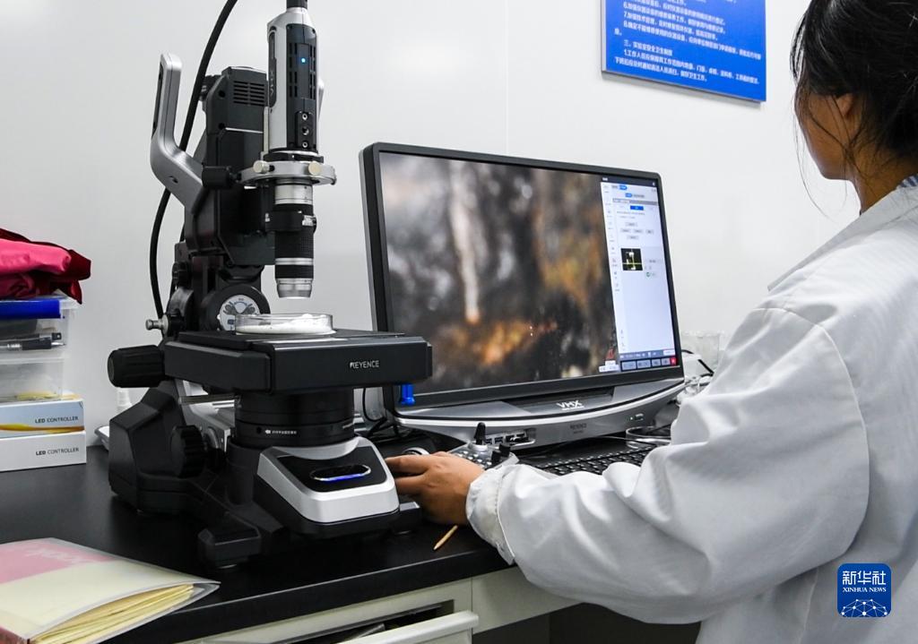 在四川省廣漢市三星堆祭祀區考古發(fā)掘現場(chǎng)實(shí)驗室,萬(wàn)嬌博士團隊對種子進(jìn)行掃描登記(視頻截圖 6月1日攝)。新華社記者 唐文豪 攝