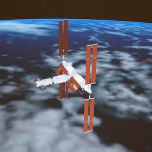 2022年12月29日在北京航天飛行控制中心拍攝的天舟五號貨運飛船與空間站組合體完成自主快速交會(huì )對接示意圖。新華社發(fā)(孫豐曉 攝)