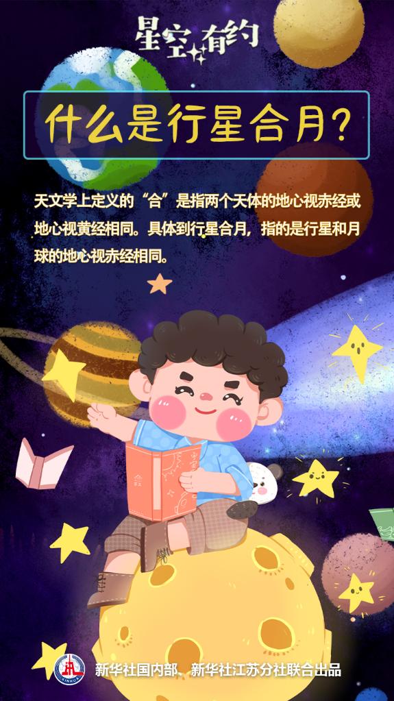 中科院紫金山天文臺科普主管王科超介紹,要解開(kāi)合月的奧秘,首先要知道什么是“合”。王科超說(shuō),天文學(xué)上定義的“合”并非兩個(gè)天體真的合并在一起,而是指兩個(gè)天體的地心視赤經(jīng)或地心視黃經(jīng)相同。具體到行星合月,指的是行星和月球的地心視赤經(jīng)相同。除了行星合月,還有恒星合月、行星合恒星、行星合行星等。