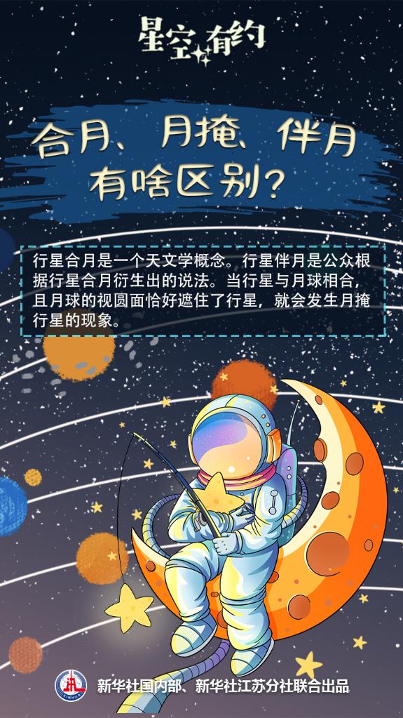 與月球相關(guān)的天象很多,如行星合月、月掩行星、行星伴月等。它們有啥區別?王科超說(shuō),行星合月是一個(gè)天文學(xué)概念,指行星和月球的地心視赤經(jīng)相同的一種特殊位置關(guān)系。行星伴月則是公眾根據行星合月衍生出的說(shuō)法,描述的是行星合月發(fā)生前后一段時(shí)間,行星和月球都看上去離得很近的“同框”畫(huà)面。而當行星與月球相合,且月球的視圓面恰好遮住了行星,就會(huì )發(fā)生月掩行星的現象。