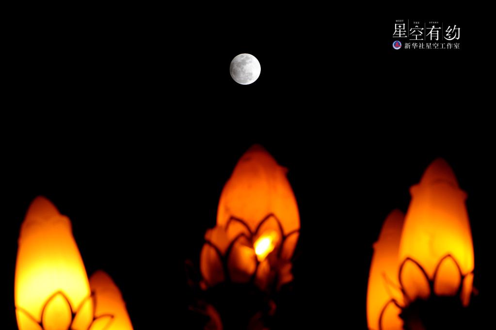 2021年10月10日,金星伴月天象在黎巴嫩貝魯特的夜空出現。新華社記者劉宗亞 攝