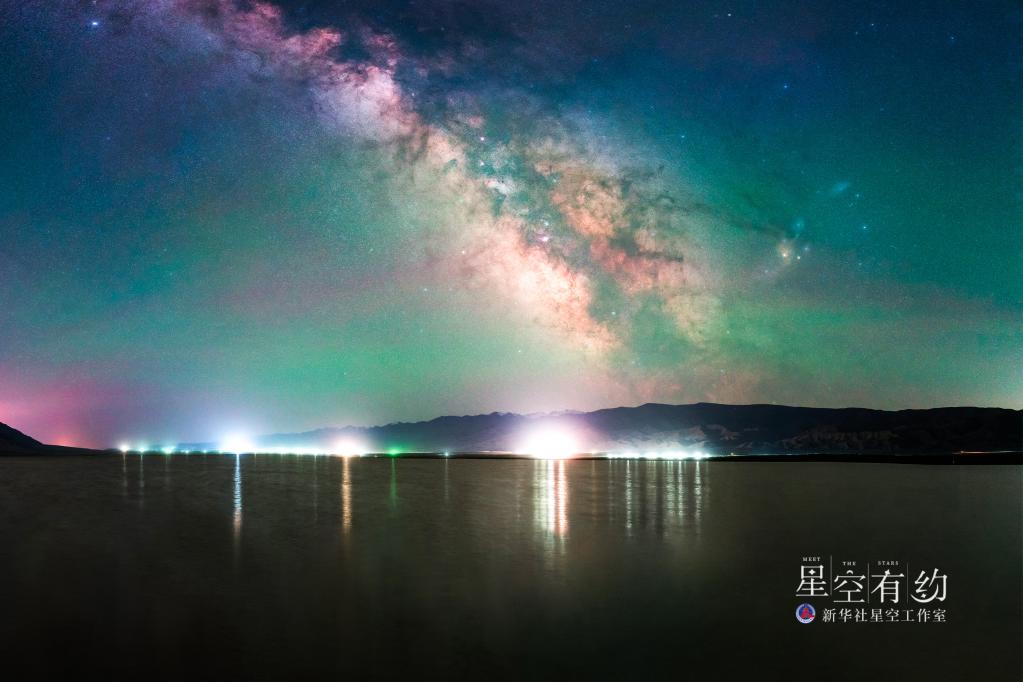 新疆星空攝影愛(ài)好者楊靂鵬2022年7月1日在哈密市幻彩湖拍攝的夏季銀河和天蝎座調色盤(pán)。(本人供圖)