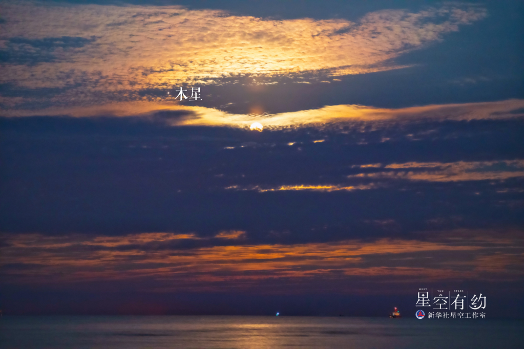 北京市天文攝影愛(ài)好者張國林2022年9月11日清晨在遼寧綏中佳兆業(yè)海灘拍攝的木星伴月。(本人供圖)