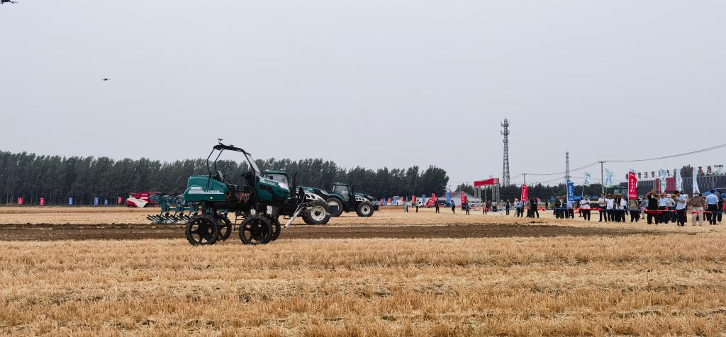 2023年中國農機推廣“田間日”活動(dòng)現場(chǎng),無(wú)人駕駛農機正在田間作業(yè)。新華社記者 葉婧 攝
