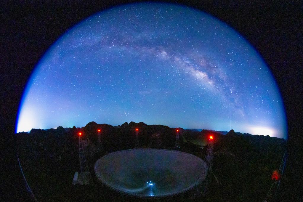 星空下的“中國天眼”(維護保養期間拍攝)。新華社記者 歐東衢 攝