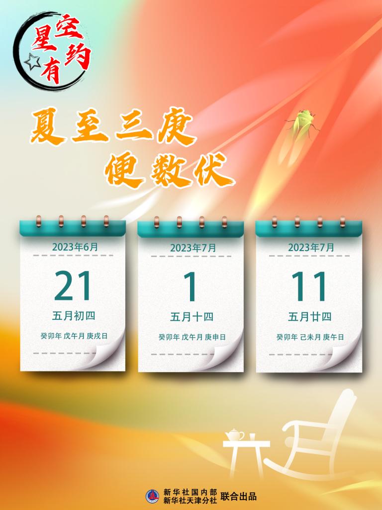 今年的夏至是公歷6月21日,從夏至日算起,第一個(gè)庚日(庚戌日)便是6月21日;第二個(gè)庚日(庚申日)是7月1日;第三個(gè)庚日(庚午日)是7月11日,于是7月11日就成了今年初伏的起始日。