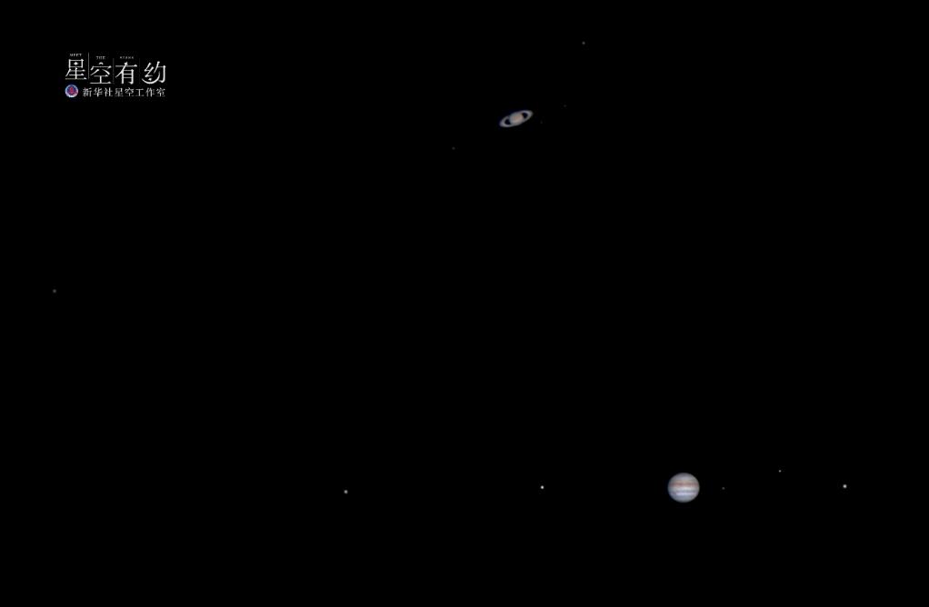 北京市天文攝影愛(ài)好者宗海陽(yáng)2020年12月21日通過(guò)天文望遠鏡拍攝到的土星(上)合木星(下)。(本人供圖)