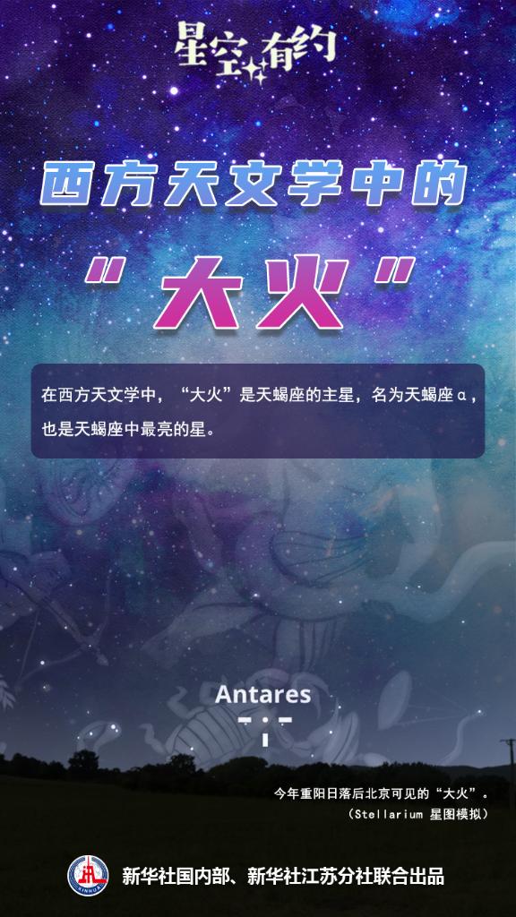 今年重陽(yáng)節這天,我國絕大部分地區的人們在日落后短暫的一段時(shí)間內,還可在西南方向的天空看見(jiàn)“大火”,但地平高度已經(jīng)不足10度,可觀(guān)測時(shí)間不到一小時(shí)。而到11月初,很多地方已完全看不到“大火”。