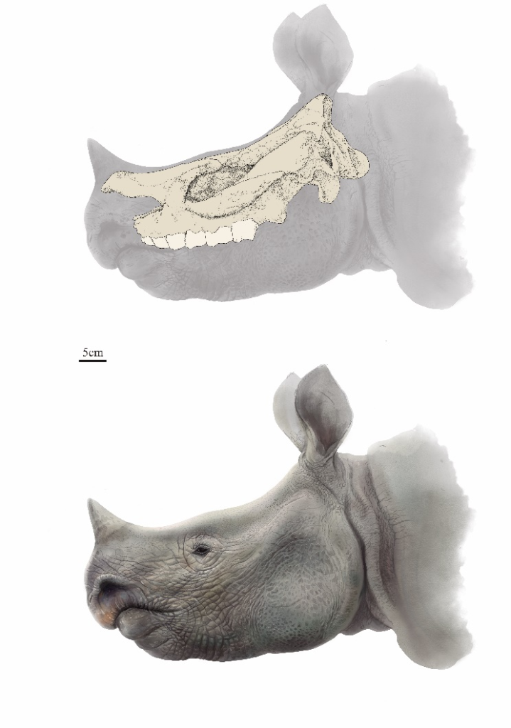 翹鼻角犀頭部復原圖。(中國科學(xué)院古脊椎所供圖)