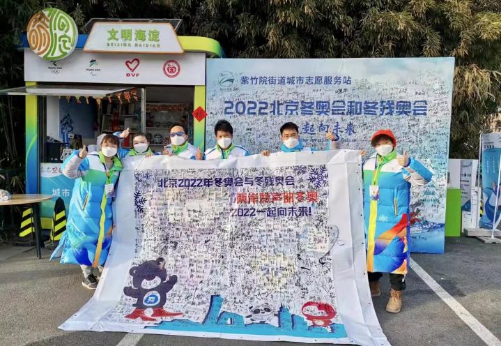 場(chǎng)館外,還有很多臺胞投身城市志愿服務(wù)。他們還結合兩岸元素,開(kāi)展閩南話(huà)冬奧送祝福等活動(dòng),陳文成和林家萱就是其中的成員。