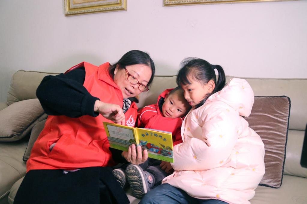 昆山“臺媽好麻吉”團隊成員(左一)在照顧抗疫一線(xiàn)工作人員家中留守的孩子。昆山市臺辦供圖