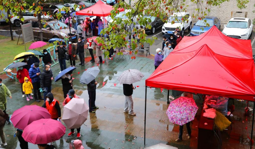 上海持續推進(jìn)核酸篩查工作。3月21日,在位于上海閔行的一個(gè)居民小區內,居民排隊進(jìn)行核酸檢測采樣。新華社記者 方喆攝