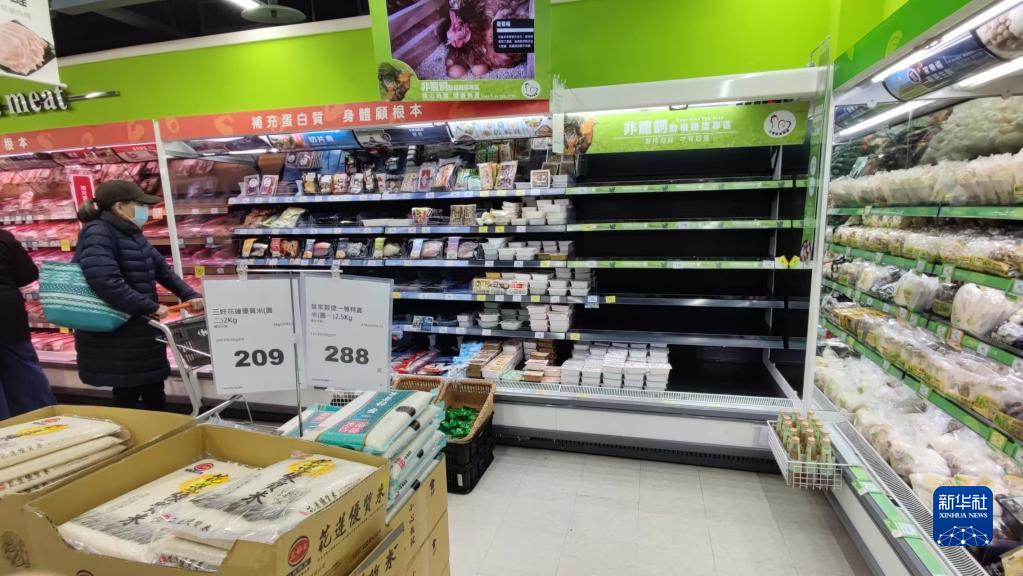 2月22日,在臺灣臺北的一家超市內,雞蛋貨架上空空如也。新華社記者 黃揚 攝