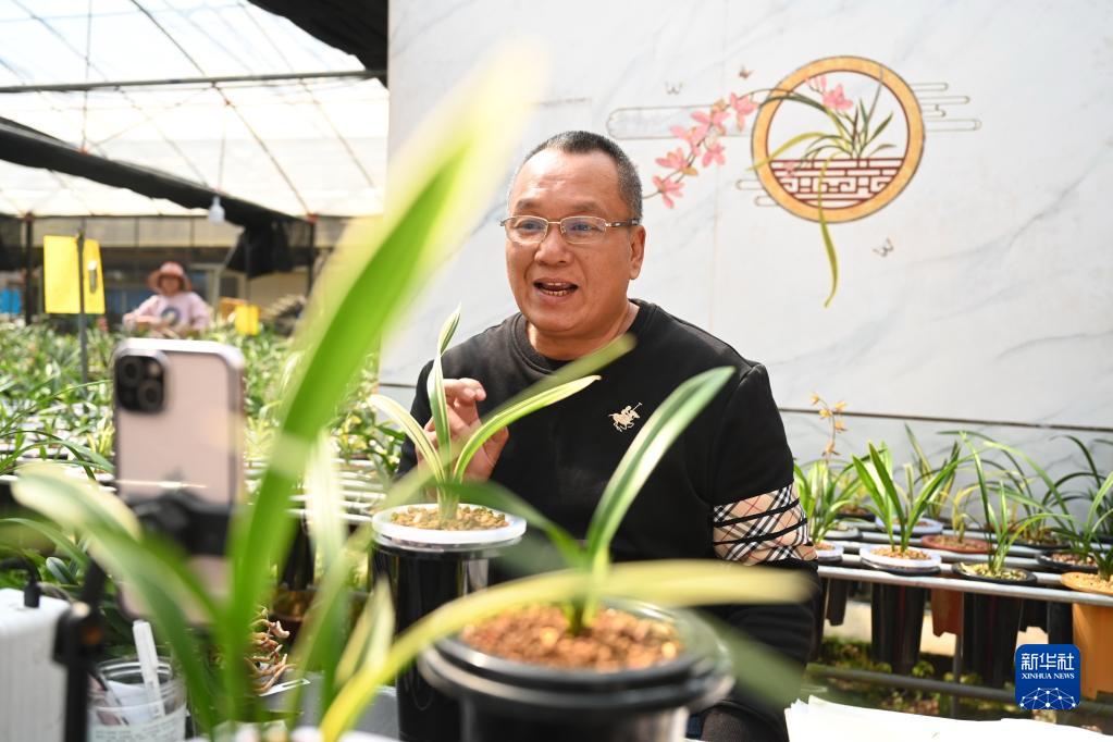 新華社福州5月5日電(記者周義)“在網(wǎng)上和粉絲賞蘭花、聊蘭花,一來(lái)二去,顧客越來(lái)越多?!痹诟=ㄕ闹莸闹辈ラg內,臺灣農民許傳輝一早就擺上幾盆蘭花,開(kāi)始“帶貨”。