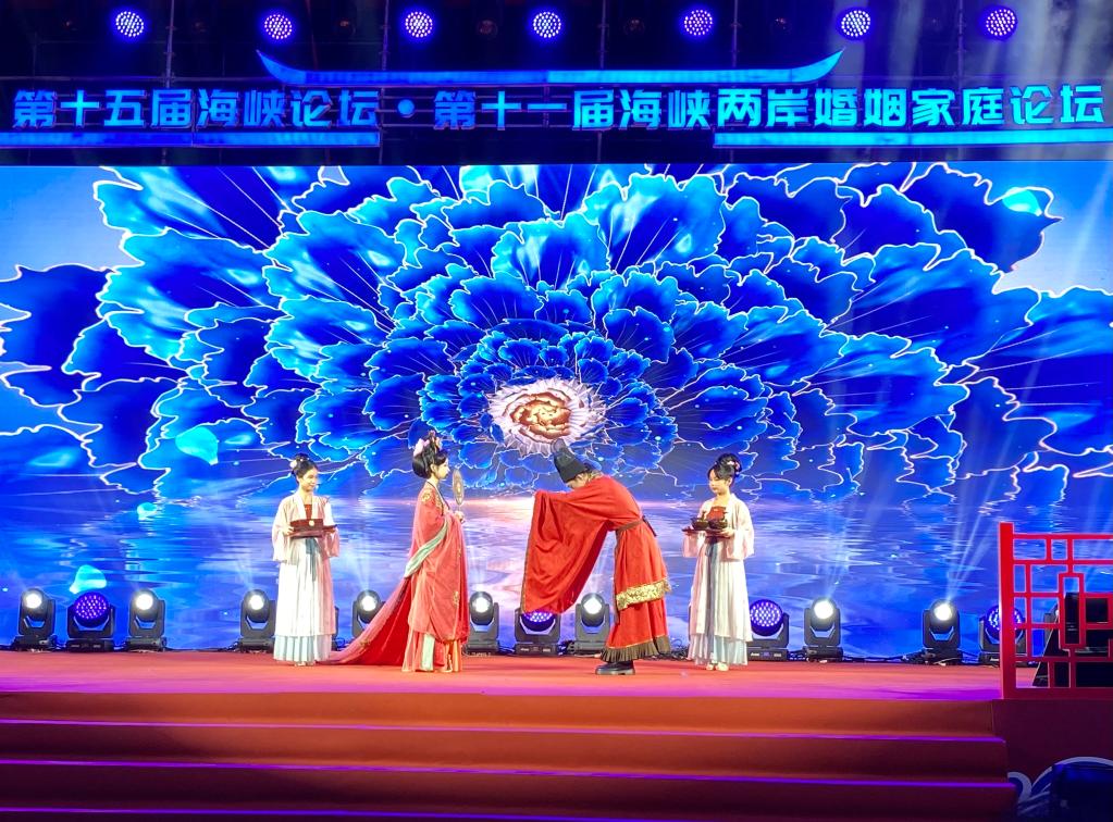 6月18日,表演者在第十一屆海峽兩岸婚姻家庭論壇文藝晚會(huì )上表演婚禮慶典。新華社記者 許雪毅 攝