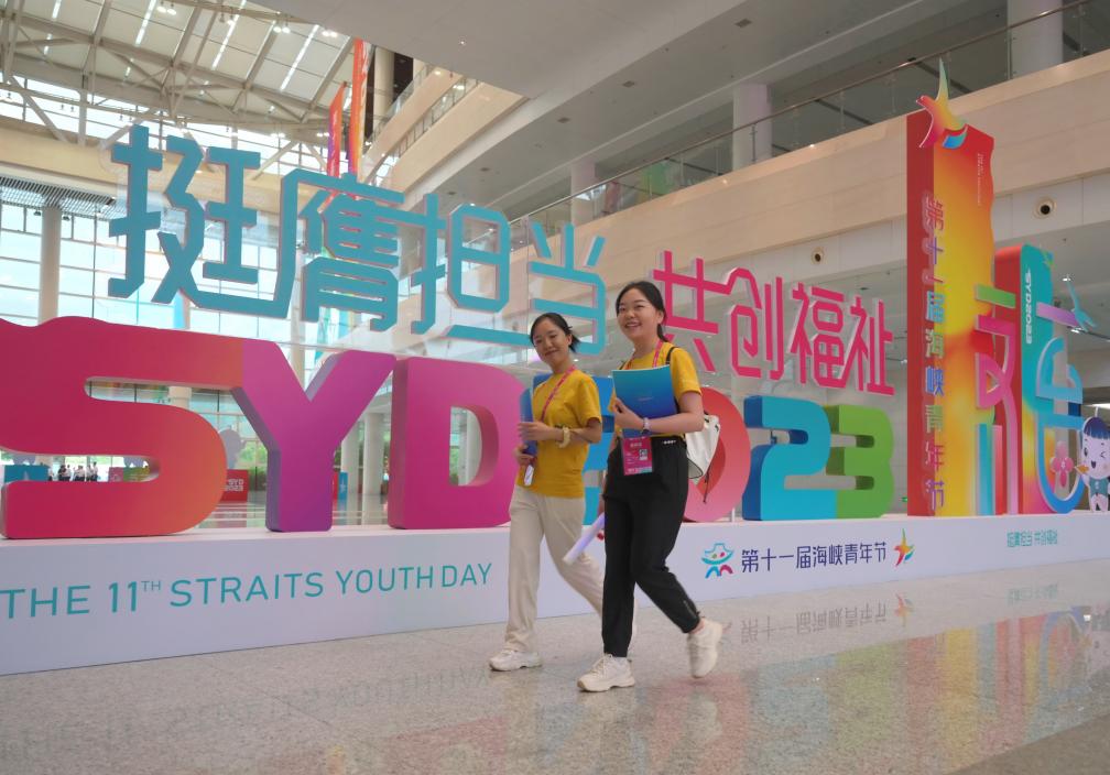 8月10日,青年代表從第十一屆海峽青年節宣傳欄前走過(guò)。新華社記者 林善傳 攝
