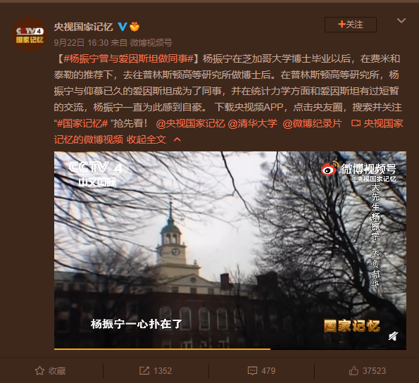 楊振寧在芝加哥大學(xué)博士畢業(yè)以后,在費米和泰勒的推薦下,去往普林斯頓高等研究所做博士后。在普林斯頓高等研究所,楊振寧與仰慕已久的愛(ài)因斯坦成為了同事,并在統計力學(xué)方面和愛(ài)因斯坦有過(guò)短暫的交流,楊振寧一直為此感到自豪。