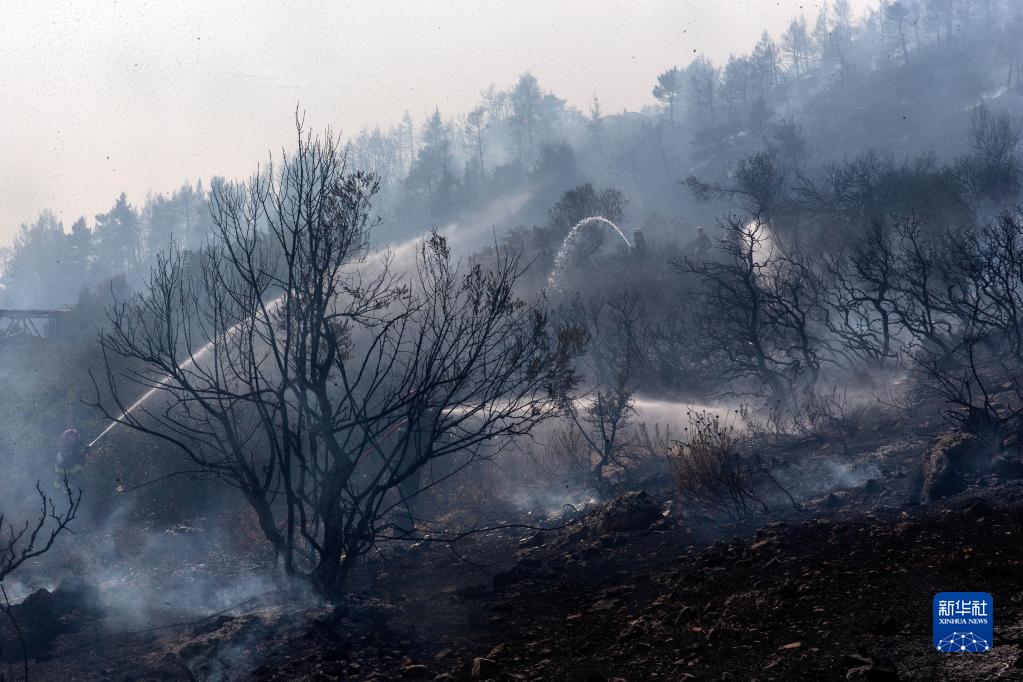 8月23日,消防員在希臘雅典西北的維利亞村進(jìn)行滅火作業(yè)。