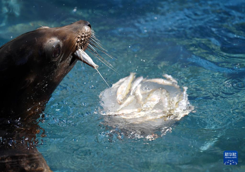 8月26日,一只海獅在意大利羅馬動(dòng)物園享用冰凍食物。