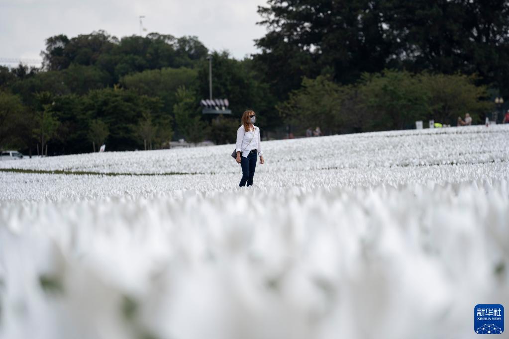 當日起至10月初,超過(guò)66萬(wàn)面白色旗幟擺放在華盛頓紀念碑附近悼念美國超過(guò)66萬(wàn)名新冠逝者。