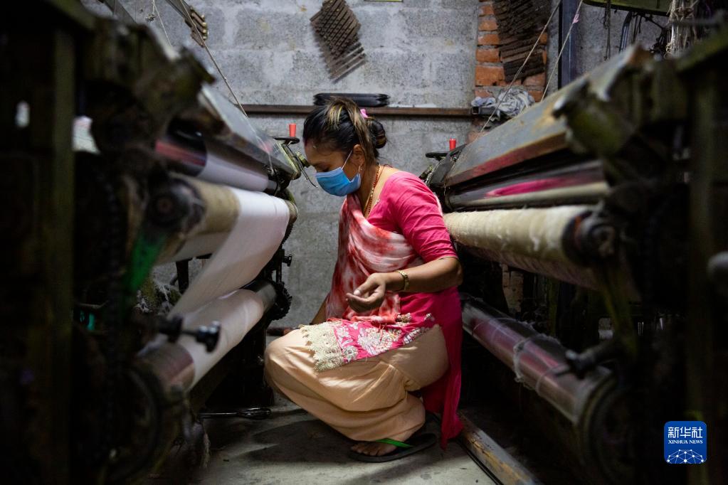 10月10日,一名工人在尼泊爾加德滿(mǎn)都的一處披肩工廠(chǎng)工作。